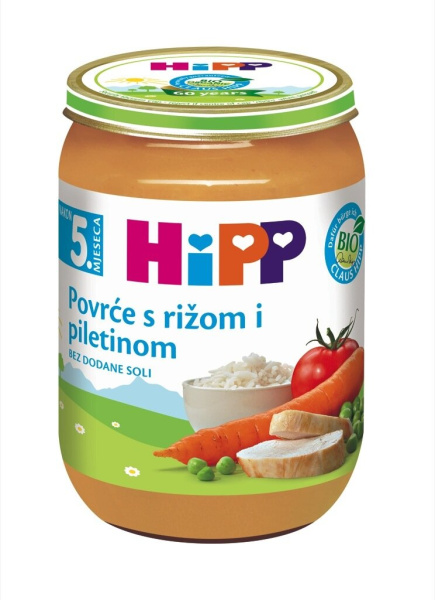 Bio kašica z zelenjavo, rižem in piščancem, od 5. meseca starosti, Hipp, 190 g