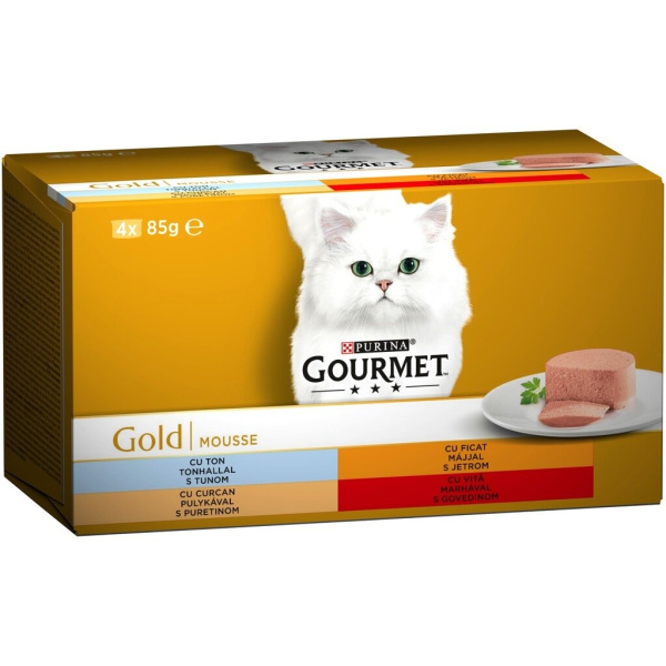 Hrana za mačke Gourmet Gold s tuno, jetri, puranom in govedino, Purina, 4 x 85 g