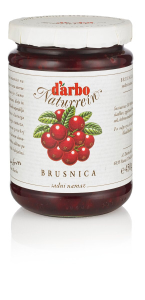 50 % brusnic, sladkor, zgoščeni sok limone, želirno sredstvo: pektin.