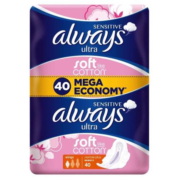 Damski vložki Always Ultra Sensitive Normal Plus, 40 kosov