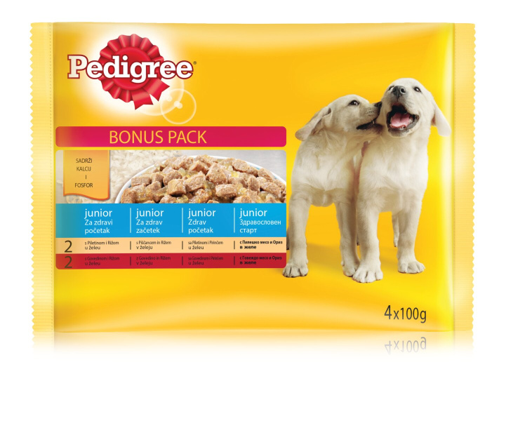 Hrana za pse Junior s piščanecem in puranom, Pedigree, 4x100 g