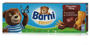 PŠENIČNA moka, glukozni fruktozni sirup, JAJCA 12,3 %, sladkor, repično olje, čokolada 6 %[kakavova masa, sladkor, manjmasten kakavov prah, emulgator (SOJIN lecitin)], stabilizator (glicerol), posneto MLEKO v prahu 3,4 %, polno MLEKO v prahu 2,2 %*, PŠENIČNI škrob, sredstva za vzhajanje (difosfati, natrijevi karbonati), emulgatorji (laktatni estri mono- in digliceridov maščobnih kislin, policerolni estri maščobnih kislin, SOJIN lecitin), jedilna sol, manjmasten kakavov prah, arome. *MLEČNI ekvivalent 53 %. Čokolada vsebuje: kakavovi deli najmanj 55 %. Lahko vsebuje OREŠČKE.