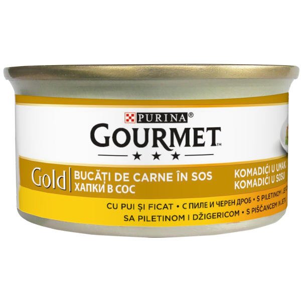 Hrana za mačke Gourmet Gold s piščancem in jetri, Purina, 85 g