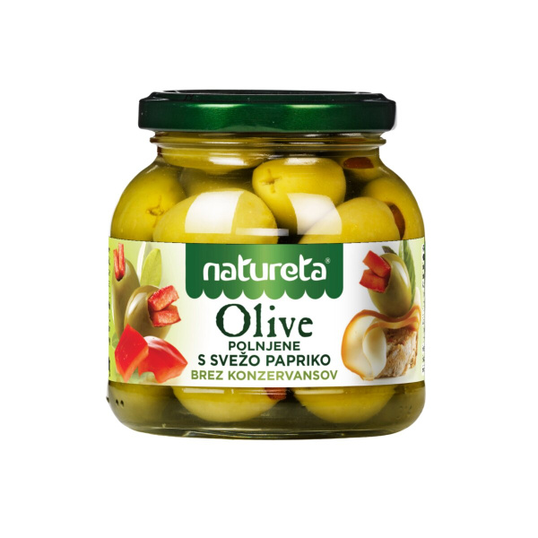 Zelene olive polnjene s papriko, Natureta, 290 g