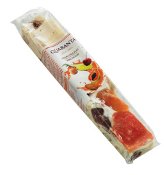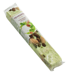 Sestavine: sladkor, MANDLJI, glukozni sirup, med, PISTACIJA, LEŠNIK, koruzni škrob, sončnično olje, posneto MLEKO v prahu, JAJČNI BELJAK, krompirjev škrob, SIROTKA v prahu, LAKTOZA, kakavovo maslo, sol, koncentrat (buča, spirulina, jabolko), naravne arome, voda, emulgator: sončnični lecitin. Lahko vsebuje ARAŠIDE, OSTALE OREŠKE, SOJO in SEZAM.