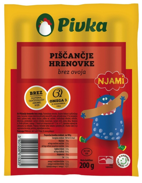 Piščančje hrenovke, brez ovoja, Njami, pakirano, 200 g