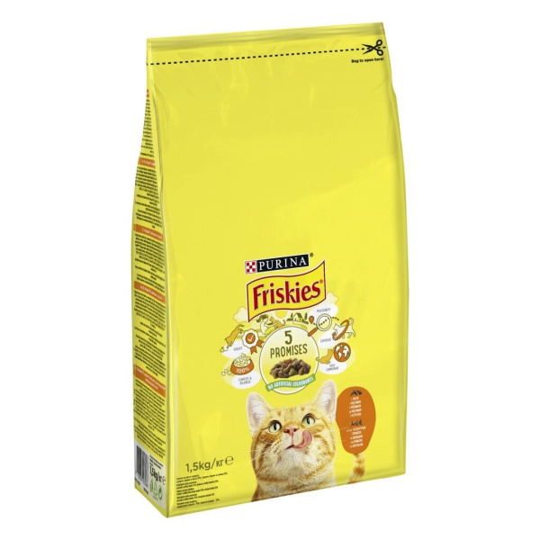 Hrana za mačke Friskies Adult s pičancem in zelenjavo, Purina, 1,5 kg, briketi