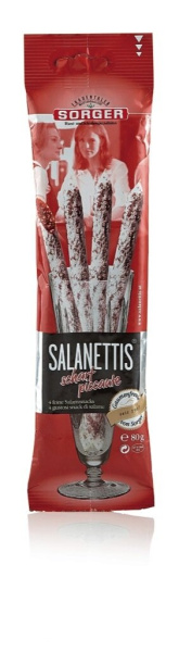 Blago pekoči salamini v obliki palčk Salanettis, Sorger, pakirano, 80 g