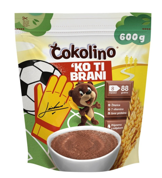 V 2 dl (200 ml) prekuhanega (ohlajenega na 50°C) mleka vmešajte 5 velikih žlic (30 g) kosmičev in okusen obrok je pripravljen.Otroku vedno ponudite samo sveže pripravljen Čokolino kot nadomestilo za en mlečni obrok. Pomembno je upoštevati navodilo za pripravo obroka!