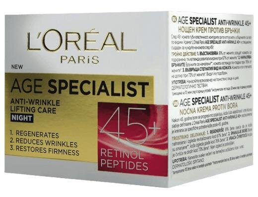 Nočna krema za obraz Age Specialist 45+, Loreal, 50 ml