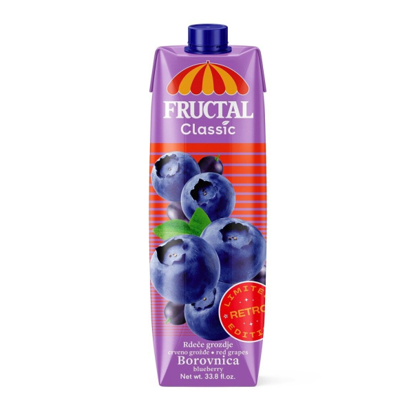 voda, sok rdečega grozdja (22 %) iz zgoščenega soka, sladkor, borovničev sok (3 %) iz zgoščenega soka, glukozni-fruktozni sirup, kislina (citronska kislina), borovničeva aroma.