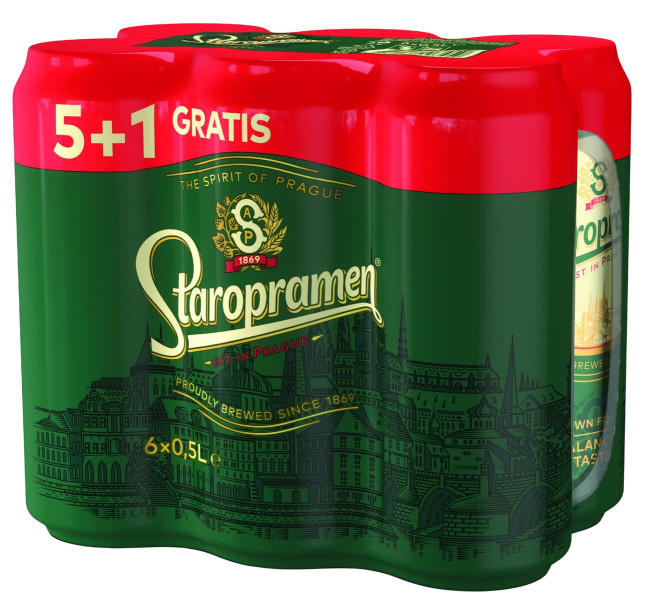 Pivo Staropramen, 0,5 l, 5 + 1 gratis