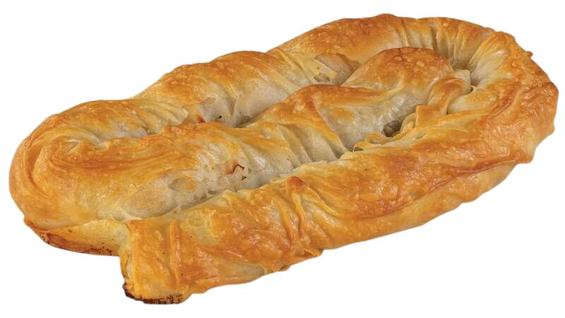 PŠENIČNA bela moka T-550, goveje meso 25,7 %, voda, čebula, svinjska mast, sončnično olje, jedilna sol, poper. Vsebuje alergene: GLUETN. Lahko vsebuje sledove MLEKA in MLEČNIH izdelkov, JAJC.