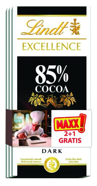 Temna čokolada Excellence 85 %, Lindt, 2 x 100 g + 100 g gratis