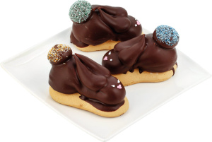 Sladkor, voda, JAJCA, PŠENIČNA bela moka, BELJAK v prahu, delno hidrogenirana maščoba (kokosova in palmina v spremenljivih deležih), kakavov prah, kakavova masa, kakavovo maslo, sončnično olje, SOJINO olje, koruzni škrob, dekstroza, emulgator (E450i, E471, E477, E470a, SOJIN lecitin), sredstvo za uravnavanje kislosti (E330), stabilizator (E413), sredstvo za vzhajanje (E500ii), gostilo (1520), barvila (E124, E110, E551). Lahko vsebuje sledi MLEKA, OREHOV, LEŠNIKOV, MANDLJEV in ARAŠIDOV.