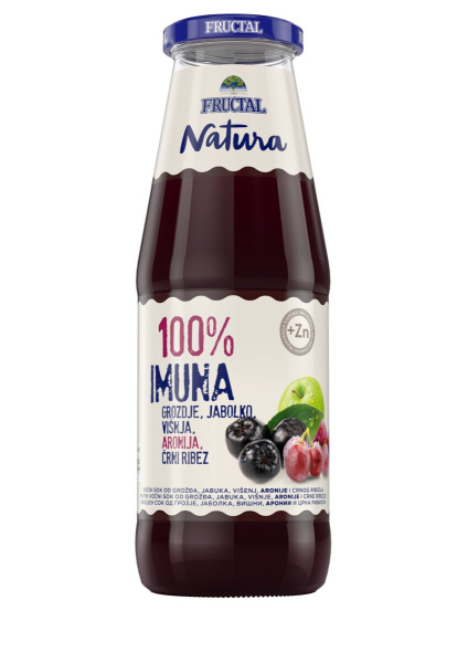Grozdni sok iz zgoščenega soka 43%, jabolčni sok 30%, sadni sokovi iz zgoščenih sokov: višenj 15%, aronije 10% in črnega ribeza 2%, cinkov laktat.