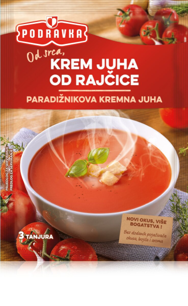 Vsebino vrečke stresite v 750 ml mlačne vode . Mešajte z metlico za stepanje dokler juha ne zavre. Med neprestanim mešanjem kuhajte na zmernem ognju 5 minut.