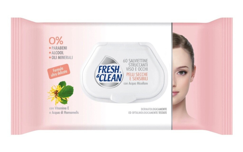 Robčki za odstranjevanje ličil Sensitive, Fresh & Clean, 48 robčkov