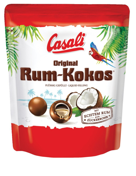 Sladkor, kakavovo maslo, polno MLEKO v prahu, kakavova masa, sladka SIROTKA v prahu, rum 4 %, kokosova moka 4 %, OVSENA moka, aroma, emulgator: SOJIN lecitin, glazirni sredstvi: arabski gumi, šelak, glukozno-fruktozni sirup, želatina, PŠENIČNI škrob.