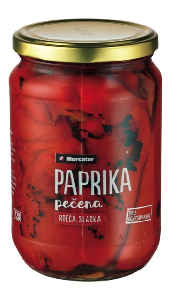 Pečena rdeča sladka paprika, voda, jedilna sol, kislina: E260 sladkor, česen.
