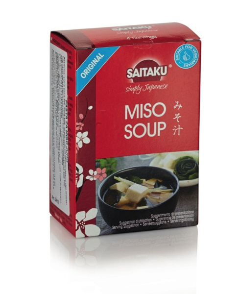 SOJINA pasta 68 % (SOJA, riž, sol), voda, sol, alkohol, wakame morske alge, ekstrakt kelp alge, ektrakt kvasa, sladkor, SOJINA omaka. Vsebuje SOJO in GLUTEN.