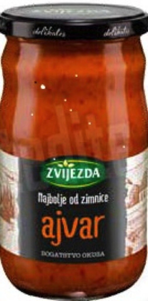 Paprika 81 %, modri jajčevci 10 %, rastlnska olja (sončnično), sladkor, kis, blagi feferoni 1 %, kuhinjska sol, česen.