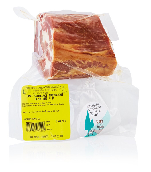 Prekajen svinjski vrat, KZ Idrija, pakirano, cena za kg