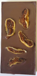 Mlečna čokolada: kakavovi delci: najmanj 35%, kakavova masa, sladkor, MLEKO v prahu, kakavovo maslo, suhe fige, pomaranča, vanilija, emulgator: SOJIN leticin. Lahko vsebuje sledi LUPINASTEGA SADJA, SEZAMA, OREŠČKOV, SOJE in PŠENIČNIH BELJAKOVIN.