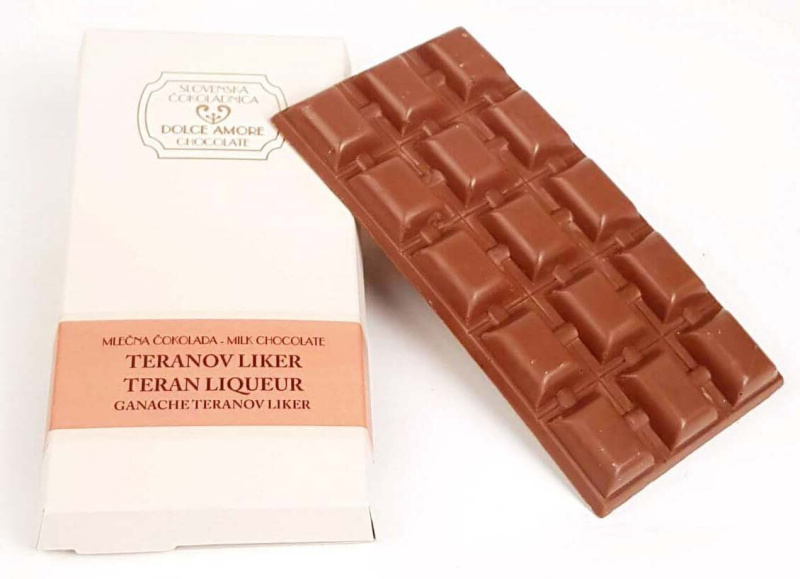 Polnjena mlečna čokolada z teranovim likerjem, Dolce Amore, 80 g