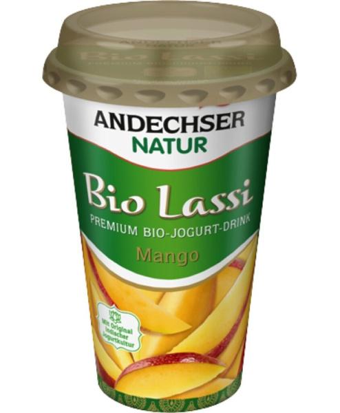 Bio tekoči sadni jogurt Lassi, mango, 3,5 % m.m., Andechser, 250 g