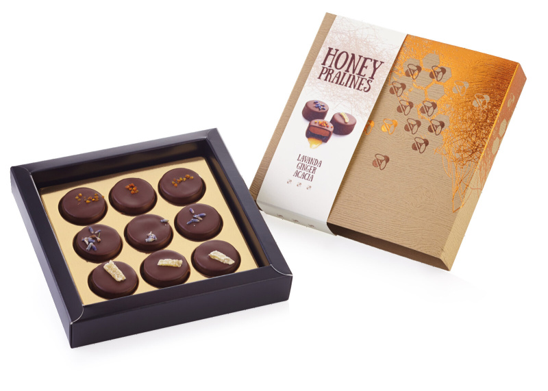 Med akacije, sladkor, kakavova masa, rastlinske maščobe, čista maslena maščoba, kakavovo maslo, polno mleko v prahu, invertni sladkor, naravna aroma sivke, cvetni prah, emulgator: sojin lecitin, naravna aroma ingver, naravna aroma vanilije.