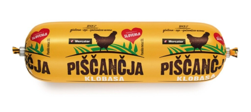 Mehansko izkoščeno piščančje meso 70%, voda, piščančja maščoba, nejodirana sol, krompirjev škrob, krompirjeve vlaknine, stabilizatorja (natrijev difosfat, predelana morska alga eucheuma), dekstroza, antioksidant (natrijev eritorbat), začimbe, ekstrakti začimb, konzervans (natrijev nitrit). Lahko vsebuje sledi MLEKA. Hraniti pri temperaturi od 0 °C do + 4 °C. Ovitek ni užiten.