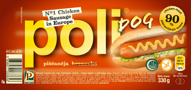 Piščančje hrenovke brez ovoja Poli, Perutnina Ptuj, pakirano, 330 g