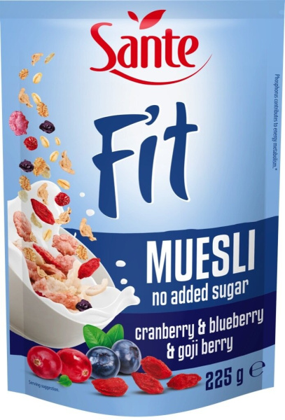 Kosmiči z brusnicami, borovnicami in goji jagodami, Sante, 225 g