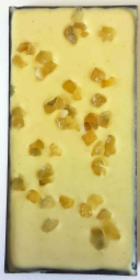 Ročno izdelana temna in bela čokolada »LIMONINA POTICA« Sestavine: Temna čokolada: kakavovi deli: najmanj 55% kakavova masa, Bela čokolada: kakavova masa, sladkor, MLEKO v prahu, kakavovo maslo, naravna aroma limone, kandirana limona, vanilija, emulgator: SOJIN lecitin, Lahko vsebuje sledi LUPINASTEGA SADJA, SEZAMA, OREŠČKOV, JAJČNIH IN PŠENIČNIH BELJAKOVIN.
