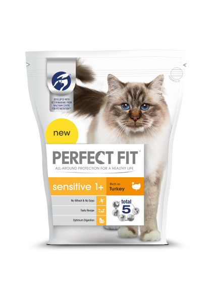 Hrana za mačke Sensitive s puranom, Perfect Fit, 750 g, briketi