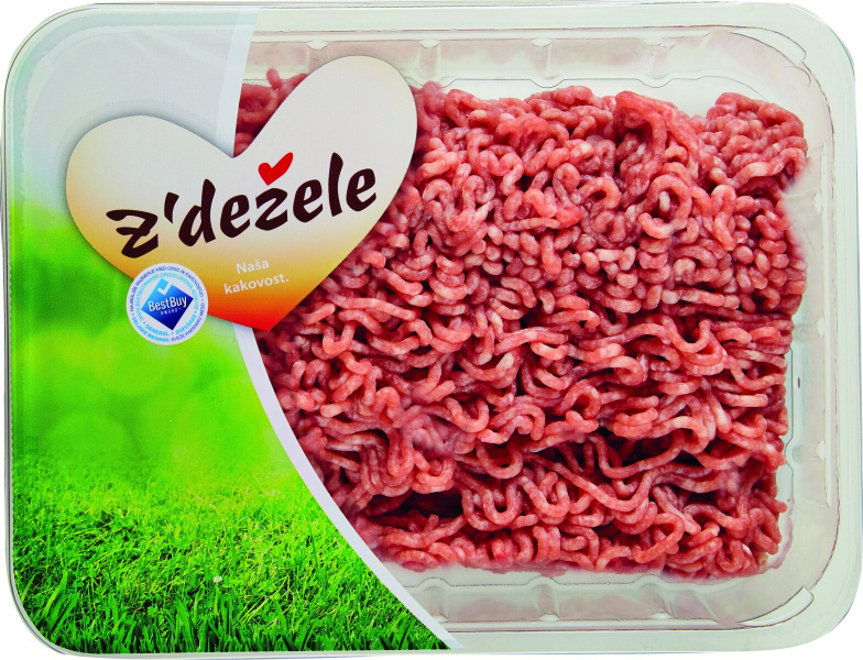 Sveže meso. 50 % svinjsko meso (svinjsko pleče II. Kategorije) in 50 % goveje meso (goveje pleče, vrat, podplečje II. in III. kategorije). Odstotek maščob manjši od 30%. Razmerje kolagen/mesne beljakovine manjši od 18%. Pakirano v kontrolirani atmosferi. Pred uživanjem toplotno obdelati do središčne temperature + 85 °C. Hraniti pri temperaturi do +2 °C.