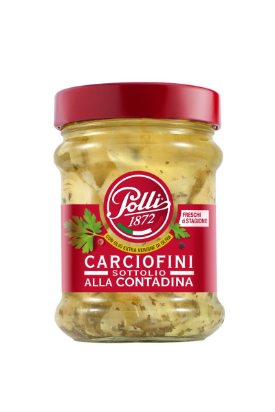 Narezana artičoka 55%,sončnično olje z naravno aromo česna in naravno aromo peteršilja,ekstra deviško oljčno olje 2%,jedilna sol,česen,peteršilj, vinski kis (vsebuje sulfit),sredstvo za uravnavanje kislosti:mlečna kislina, citronska kislina, antioksidant:askorbinska kislina.