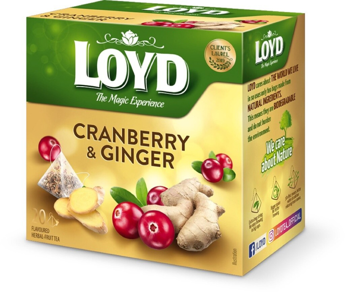 Sadni čaj, brusnica in ingver, Loyd, 20 vrečk, 40 g