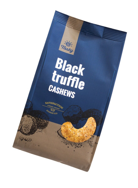 INDIJSKI OREŠČKI (91 %), palmino olje, maltodekstrin, jedilna sol, dekstrin, koščki tartufov (0,5 %), kvasni ekstrakt, naravna aroma (vsebuje JAJCA), čebula, aroma, sredstvo za uravnavanje kislosti: citronska kislina, začimbe.