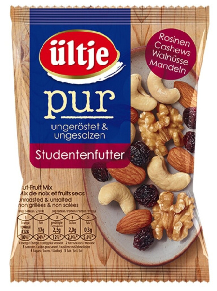 Rozine, INDIJSKI OREŠČKI, OREHI, MANDELJNI, sončnično olje. Vsebuje sledi ARAŠIDOV in drugih OREŠKOV. Opozorilo: majhni otroci se z OREŠKI lahko zadušijo.