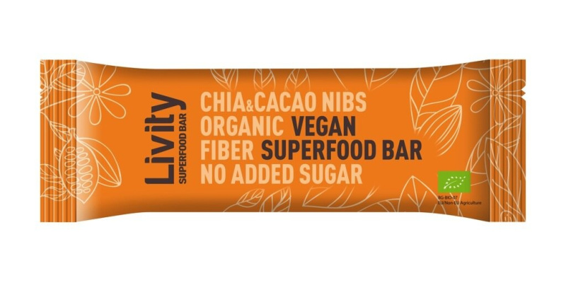 Bio presna ploščica z chia semeni in kakavovimi zrni, Livity, 30g