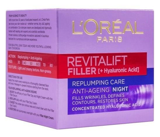 Nočna krema za obraz Revitalift Filler, Loreal, 50 ml