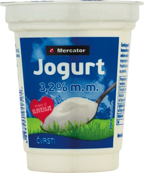 Čvrsti JOGURT iz pasteriziranega in fermentiranega mleka s 3,2 % mlečne maščobe.