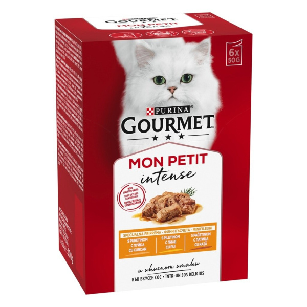Hrana za mačke Gourmet Mon Petit, okus piščanca, purana in race, 6 x 50 g