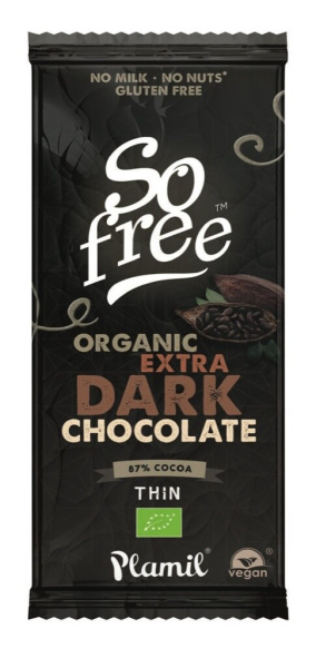 Kakavova masa#, kakavovo maslo#, surov trsni sladkor#, emulgator (sončnični lecitin). # = ekološke sestavine. Lahko vsebuje sledove SOJE. Kakavovi deli: najmanj 87 %. *iz kontrolirane ekološke pridelave.