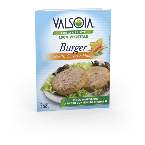 Sojin burger z grahom, korenjem in koruzo, Valsoia, 200 g