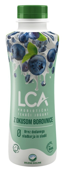 Tekoči jogurt LCA Nula, borovnica, Zelene Doline, 500 g