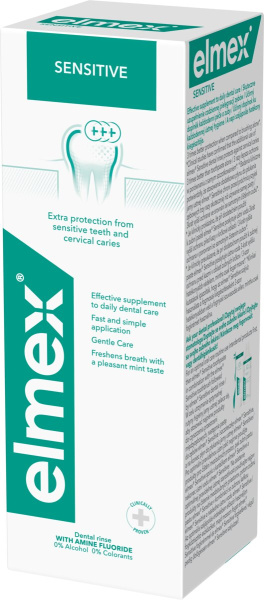 Olaflur (fluoruro amminico) e fluoruro di potassio, (250 ppm F?), Aqua, Propylene glycol, PEG-40 hydrogenated castor oil, Olaflur, Aroma, PVP/dimethylaminoethylmethacrylate polycarbamyl polyglycol ester, Saccharin, Hydroxyethylcellulose, Potassium fluoride, Potassium hydroxide, Polyaminopropyl biguanide.