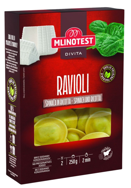 Polnjeni ravioli s špinačo in ricotto, Divita, 250 g